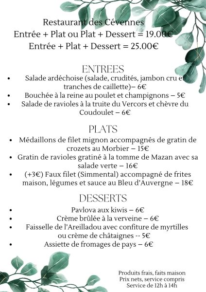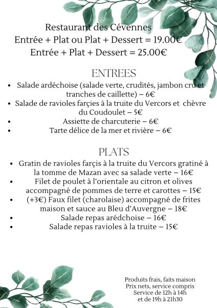 On apprécie les 14 chambres rénovées et tout confort tout autant que de la table ! On prendra donc le temps de faire une pause ici devant quelques bons produits du terroir accommodés selon les spécialités de la maison comme la caillette et la spécialité du coin, la myrtille ! Un endroit idéalement situé pour ceux qui veulent goûter à toutes les bonnes saveurs de l'Ardèche et profiter d'un séjour sympathique, l'établissement qui est relais motard est également relais équestre..